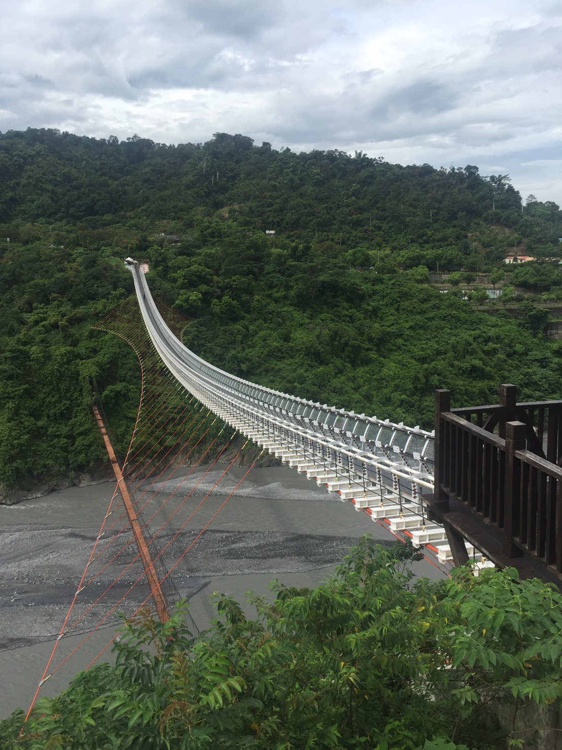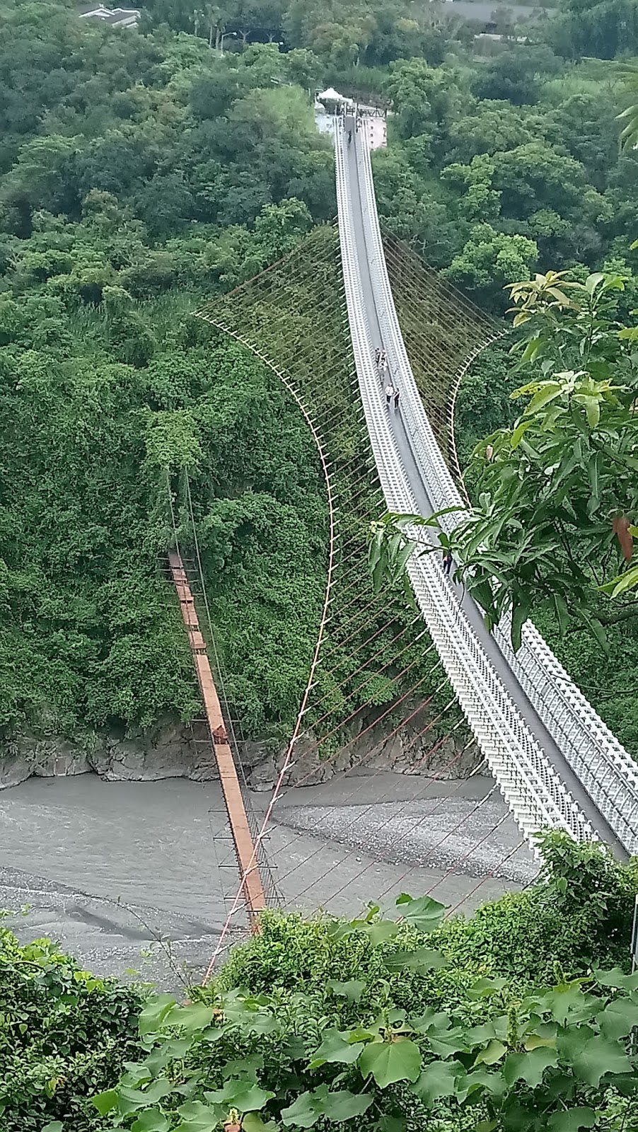 左邊那小小橘色小橋是原來的吊橋, 已經有一些踏板都不見了